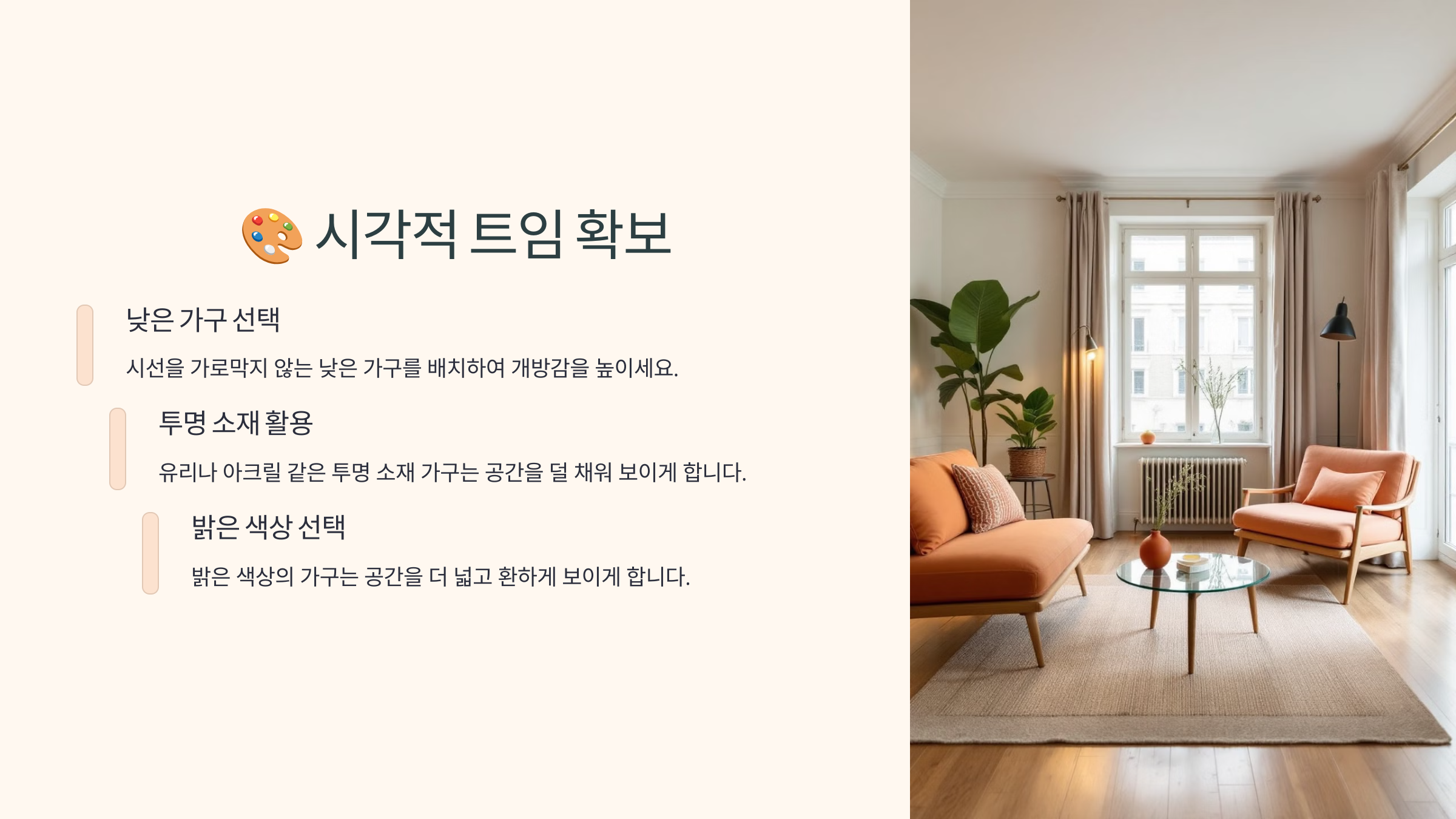 👉 다음 섹션: 시선이 트이는 낮은 가구 활용 계속해서 알아볼까요?